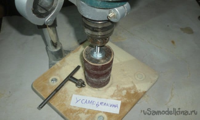 Простота нашего станка заключается в использовании в качестве привода сверлильного станка. Станок может быть любой, по параметрам сверлильного станка подбираем размеры нашего шлифовального аппарата.