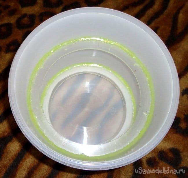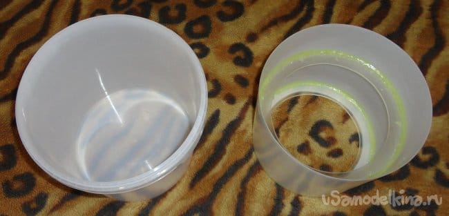 Емкость для опилок изготовлена из пластикового ведра емкостью 5Л и внутренней вставки изготовленной из такого же ведра с вклеенными (с помощью термоклея) в нее двумя ребрами жесткости в виде колец из оргстекла толщиной 4мм.