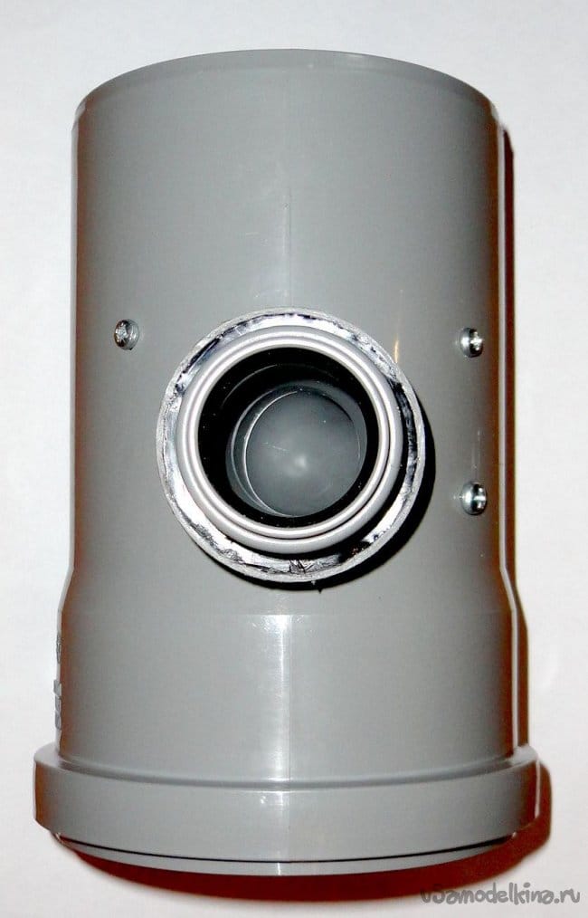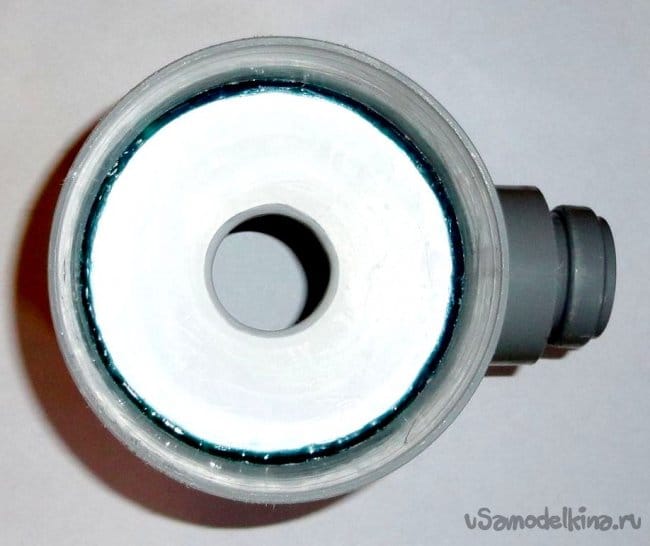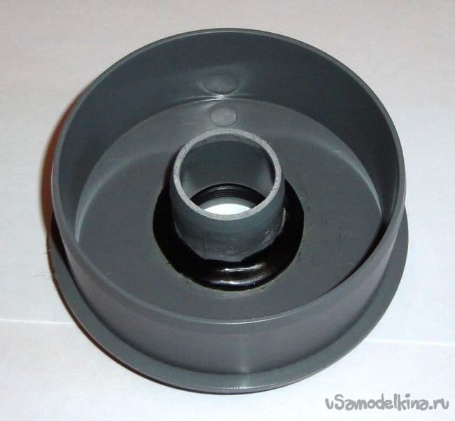 Кольцо изготовлено из пластика толщиной 15мм. Крепится к корпусу тройника четырьмя шурупами 4мм. Сверху кольцо герметизировано термоклеем.