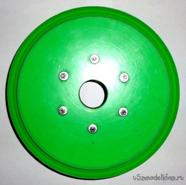 Крепеж для крышки ведра выполнен из двух дисков диаметром 194мм из оргстекла толщиной 4мм, которые установлены с обеих сторон крышки и заглушки d 110х40мм на которую наклеена резиновая прокладка толщиной 2мм. Благодаря чему достигается достаточная герметичность и возможность легкой замены крышки в случае ее повреждения. Крепеж осуществлен шестью винтами М4.