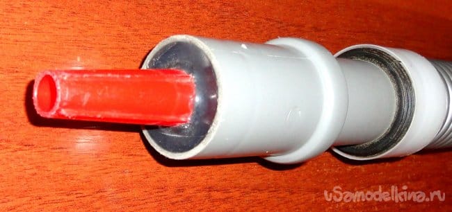 Для изготовления сопла использована соединительная муфта d 32мм с внутренним упором, в которую термоклеем вклеен носик, от такой же воронки.