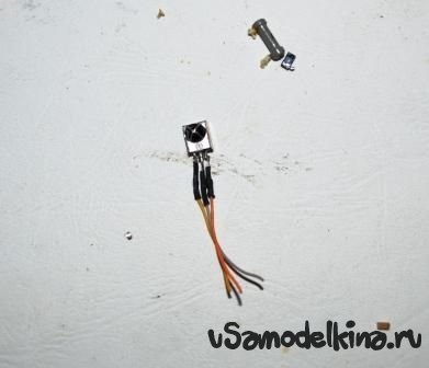 2. Я отрезал проводки и присоединил фототранзистор к туловищу с помощью горячего клея.