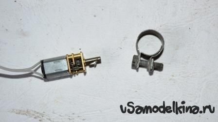 1. Пока возился с мотором, решил добавить к нему хомут, который помог идеально встроить его в книгу.