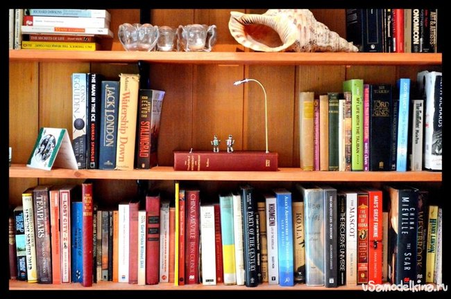 Следующим шагом будет поиск подходящей книги для встраивания аккумулятора, мотора и магнитов. Тут самый важный момент - толщина книги. Она должна быть достаточной, чтобы вместить все эти детали внутрь. У меня много книг, так что найти подходящую не составило труда (самое сложное - это как раз вырезание из книги заготовки под все запчасти!)