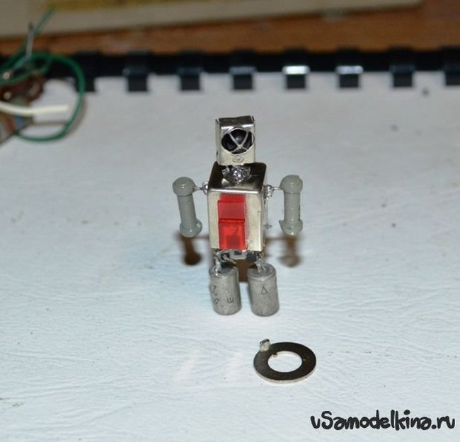 4. Ну и наконец, я припаял небольшую шайбу к ногам. Это самая важная часть, так как именно шайба сделает наших роботов танцорами!