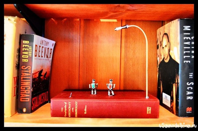 Я выбрал книгу в качестве танцпола для роботов, потому что хотел именно книгу в качестве подставки. Вы можете взять деревянную шкатулку или картонную коробку, в котором будет спрятан мотор. Но для меня книга показалась лучшим вариантом.