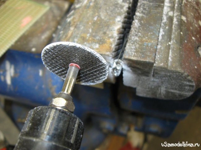 Вращая его на медленной скорости (чтобы трение не спровоцировало возгорании), подведите его к напильнику и счешите все неровности...