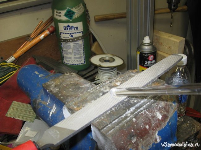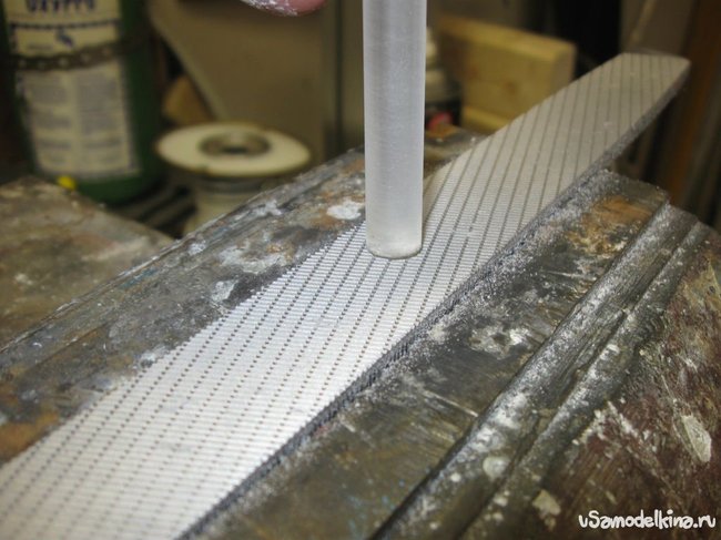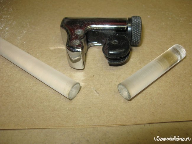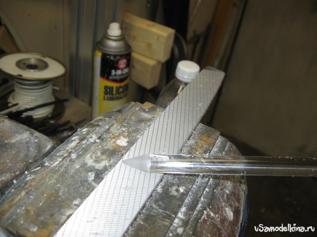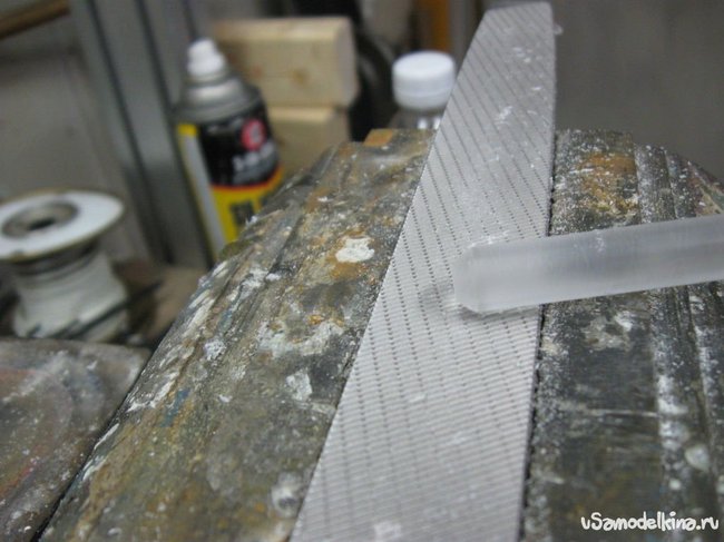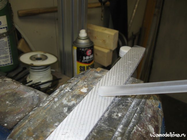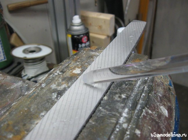 Сначала концы люцитового стержня нужно обработать напильником, затем наждачной бумагой и абразивной губкой, чтобы убрать все зазубрины.