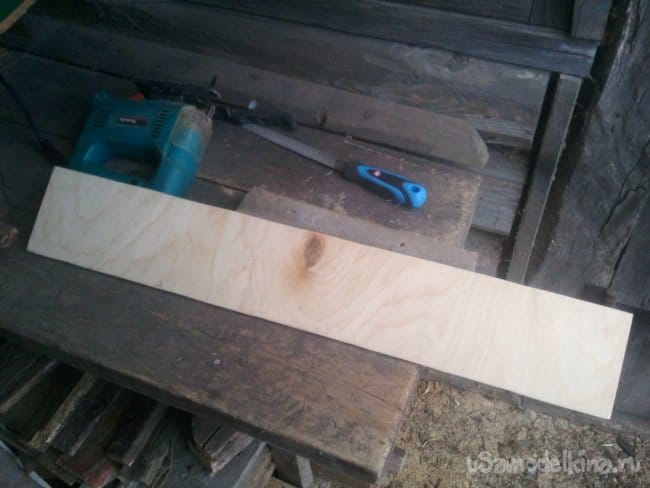 Из фанеры вырезаем прямоугольник. Размер можно задать любой. У меня был обрезок фанеры шириной 120 мм, а длинной - 800 мм. Алюминиевый уголок режем также длинной 800 мм. Кромку фанеры и место реза уголка обрабатываем напильником.