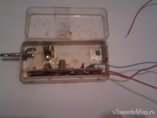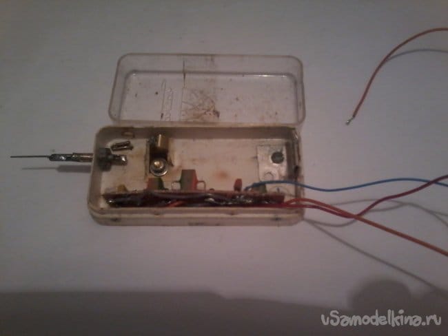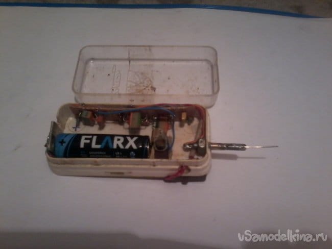 Шаг -3. Закрепляем плату в корпус, припаиваем выход «А» к иголке, а выход «в» - выводим наружу черным проводом с припаянным на его конце зажимом «крокодил».