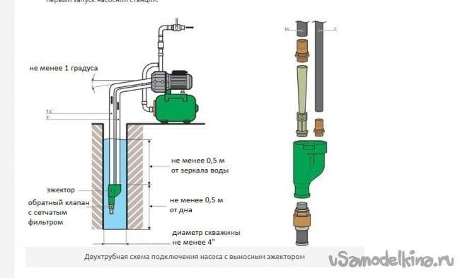 Проложил 120 м трубы, перепад высот метров 5, труба 32 на всос и 25 на обратку. Насос с выносным эжектором, который стоит на данный момент в кастрюле с водой (для теста).