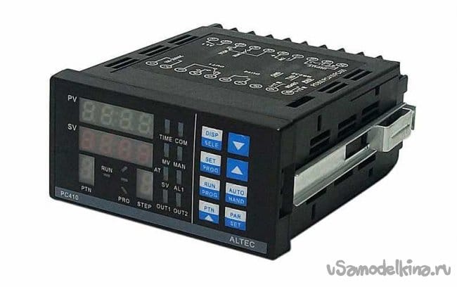 Простой температурный ПИД-контроллер задействованный в первой ипостаси печи. Умеет только точно удерживать выбранную температуру. Делает он это хорошо, молодец, но в данном применении этого мало.