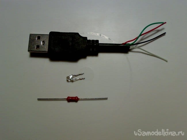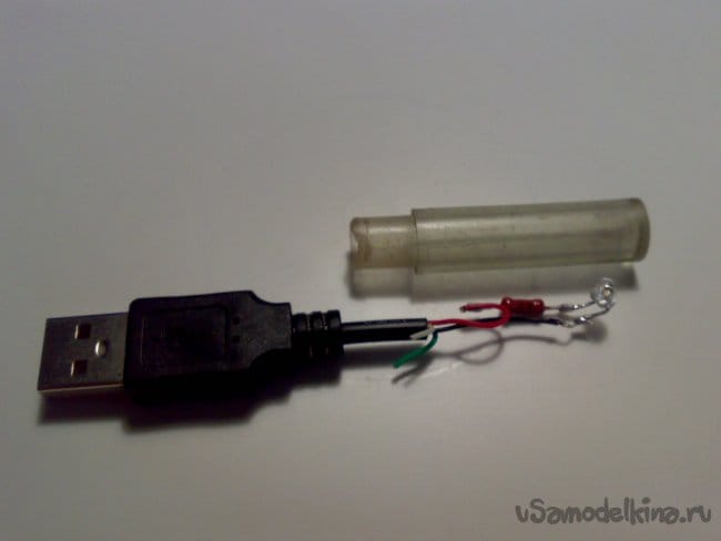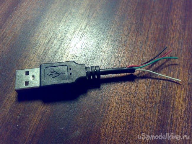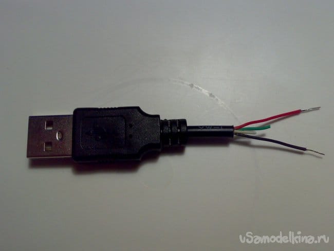 Я нашёл в своих запасах кабель от не подлежащей восстановлению и выброшенной компьютерной мыши. Отрезал от него USB разъём с небольшим отрезком кабеля.