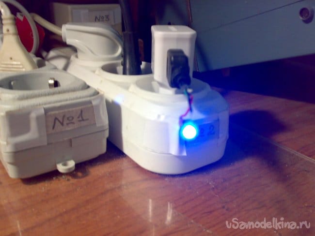 Вставил зарядник в один из блоков розеток на моём рабочем столе. Светодиод ярко загорелся. Отлично! Всё работает, как задумано.