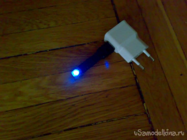 Отключил зарядник от сети. Но светодиод продолжал светиться некоторое время.