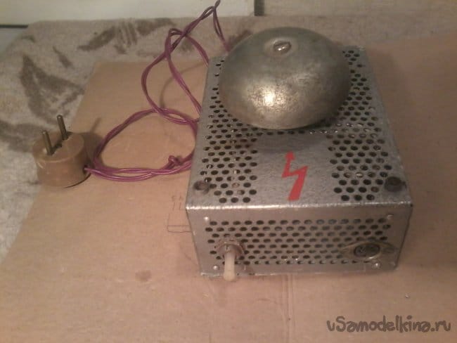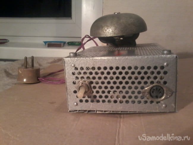 Шаг -1. Проверяем все радиодетали на работоспособность мультиметром. После этого закрепляем в корпусе трансформатор, реле, бумажный конденсатор, тумблер, 5-ти штырьковый разъем, звонок.