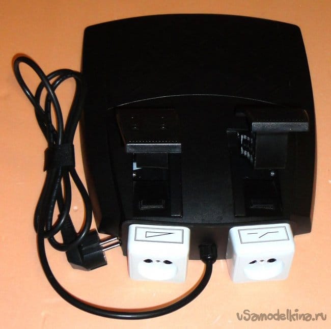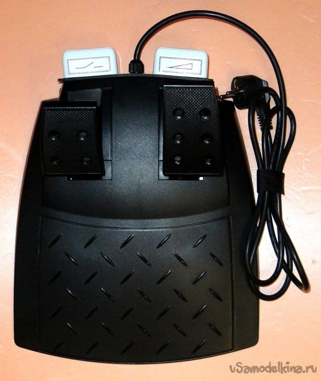 Розетка первого канала подключена к сетевому проводу через микропереключатель. Розетка второго канала подключена к сетевому проводу через диммер и микропереключатель, что обеспечивает ее полное отключение от сети при полностью отжатой педали.