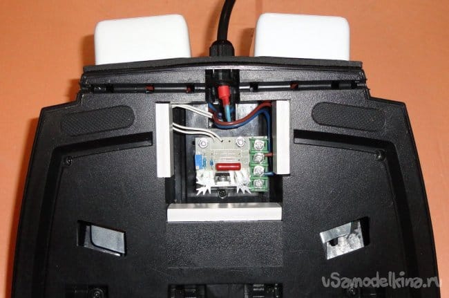 Силовые провода между собой скреплены пластиковыми стяжками, провод от переменного резистора зафиксирован термоклеем. Это позволило избежать пережатия проводов при сборке корпуса.