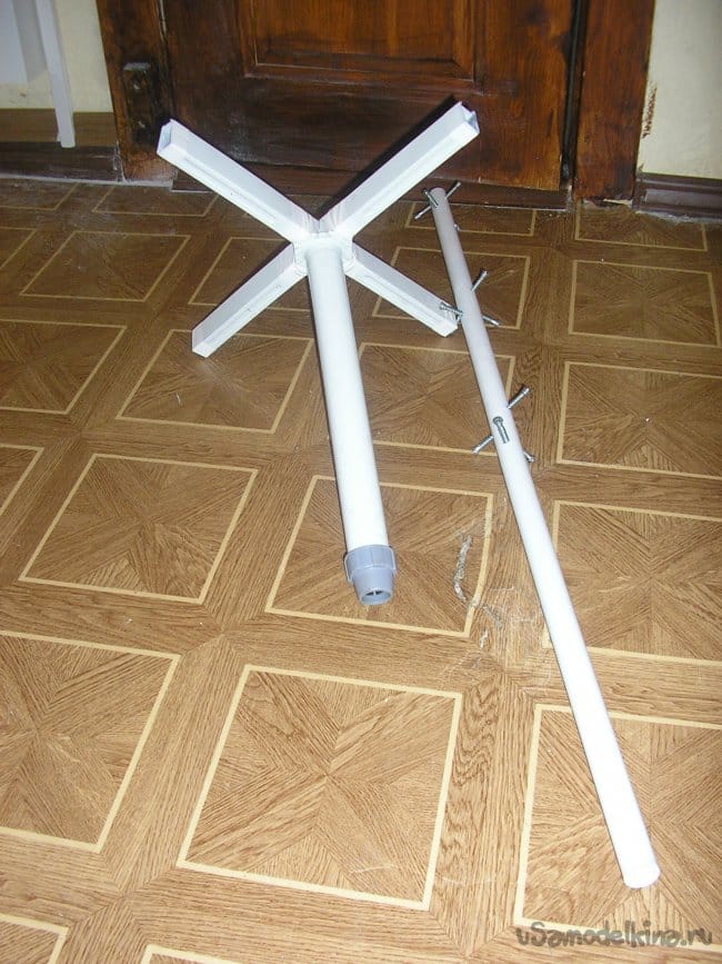 И вот, как-то раз, мне было нечем заняться, но было желание помастерить. И на глаза попалась подставка от вентилятора и обрезки пластиковых водопроводных труб. Пришла идея, сделать из этого напольную вешалку.