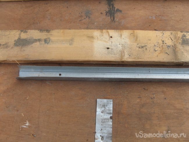 На крышку решил установить полосу металла. Она будет служить направляющей. Беру профиль для гипсо-картона и отрезаю полоску.