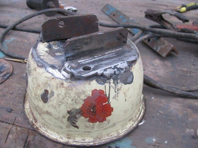 В качестве корпуса использовал стальной «черпак», он мне понравился по глубине и подошел по размерам. Я выбираю именно сталь, так как она крепкая, к ней можно привариться, а еще сталь не так быстро сотрется, в отличие от алюминия.