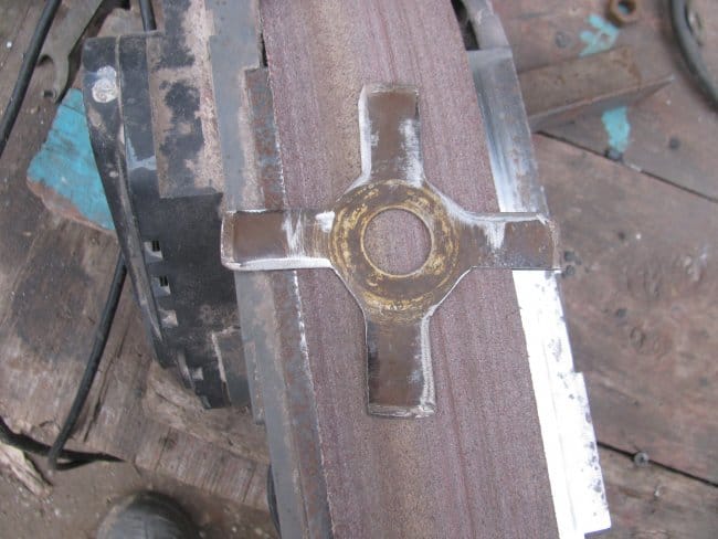 Нож решил сделать из готового стального диска, это избавит от потребности высверливать отверстие, искать центр и так далее. К тому же, диск довольно легкий и крепкий, что минимизирует вибрации.