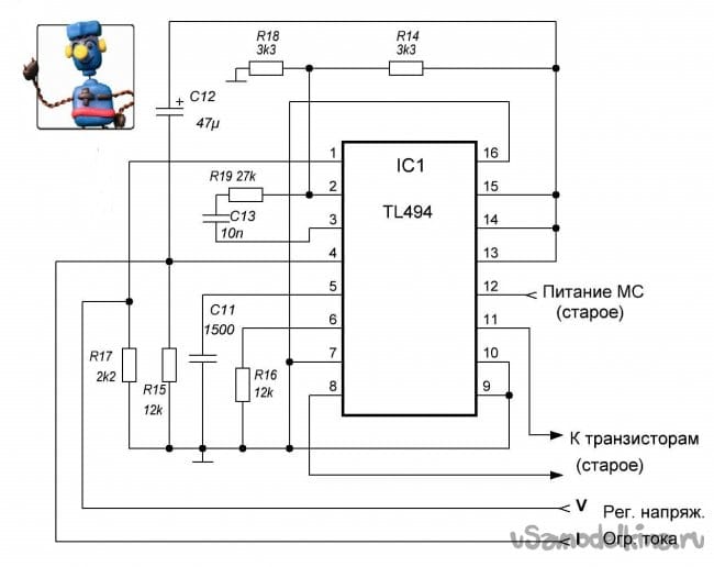 В итоге обвязка микросхемы ШИМ должна выглядеть примерно так.