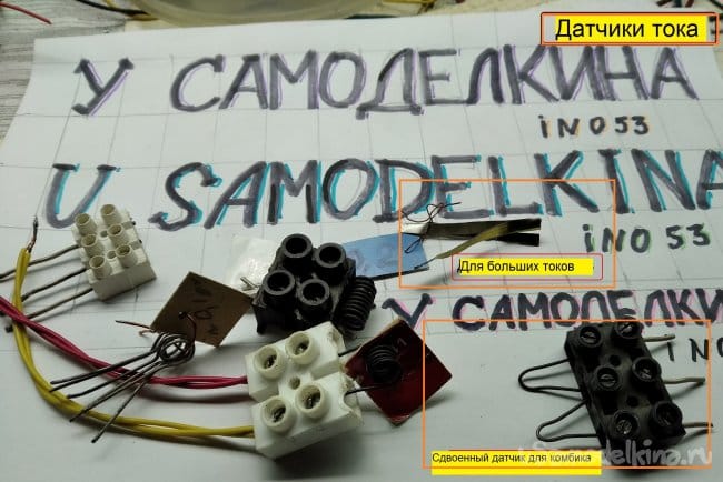 Для датчика использую самый доступный материал – нихром диаметром 1,0 и 1,2 мм. Для больших токов – полоска жести от консервной банки.