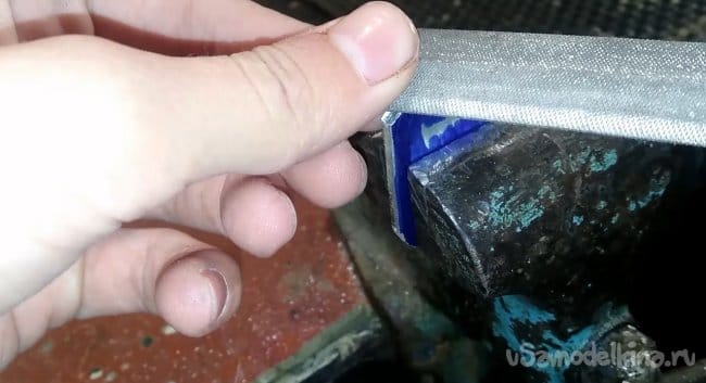 Второй этап. Нужно нам найти нужный кусок алюминия или любого цветного металла. Я нашел уголок из алюминия толщиною 3 мм с которого нужно вырезать нужный кусок с этого уголка чуть больше размеров чертежа. Так как уголок давно окислился нужно обработать наждачной бумагой, у меня она Р150.