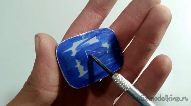 Четвертый этап. Нанесли разметку с помощью острого инструмента, таким образом чтобы по при синий маркер была видна серая разметка, по которой можно будет с легкостью обрабатывать заготовку и подводить до нужного нам результата, чем просто наклеить бумажку с разметкой.