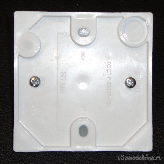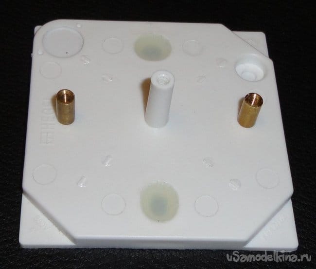 На нижней части корпуса соединительной коробки установлены монтажные стойки. В верхней части вырезаны соответствующие отверстия (по трафарету печатной платы). Заводские крепежные отверстия залиты термоклеем.