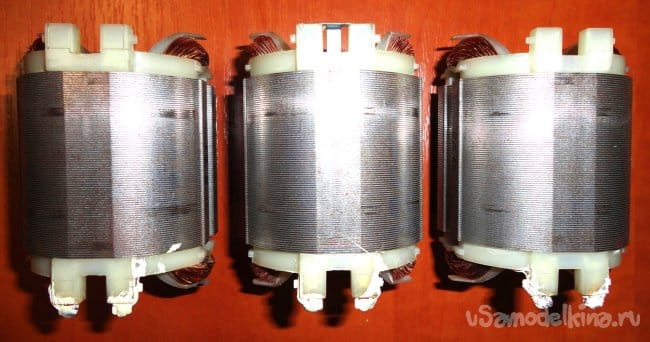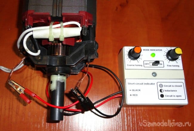 При проверке якоря щупы подключались непосредственно к щеткам коллектора. Далее выставляется режим начала мигания светодиода. Якорь проворачивается на полный оборот. Если мигание светодиода стабильно во всех положениях коллектора - то якорь, скорее всего живой. При замыкании даже соседних ламелей коллектора между собой светодиод начинает постоянно гореть, показывая замыкание. Реально убитых якорей у меня под рукой не было. Так, что результат, скорее всего весьма вероятный. Что связано с особенностями обмотки якоря.
