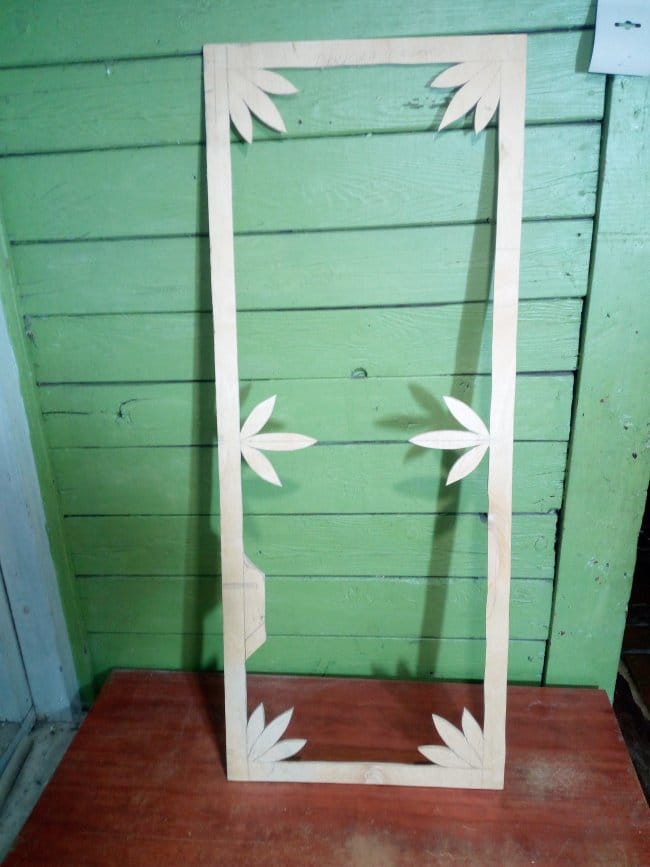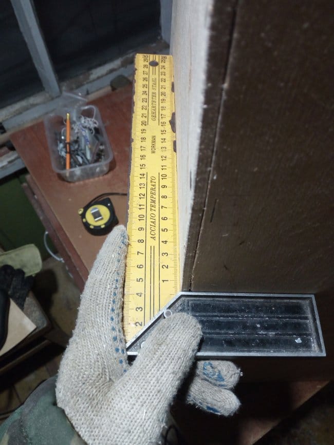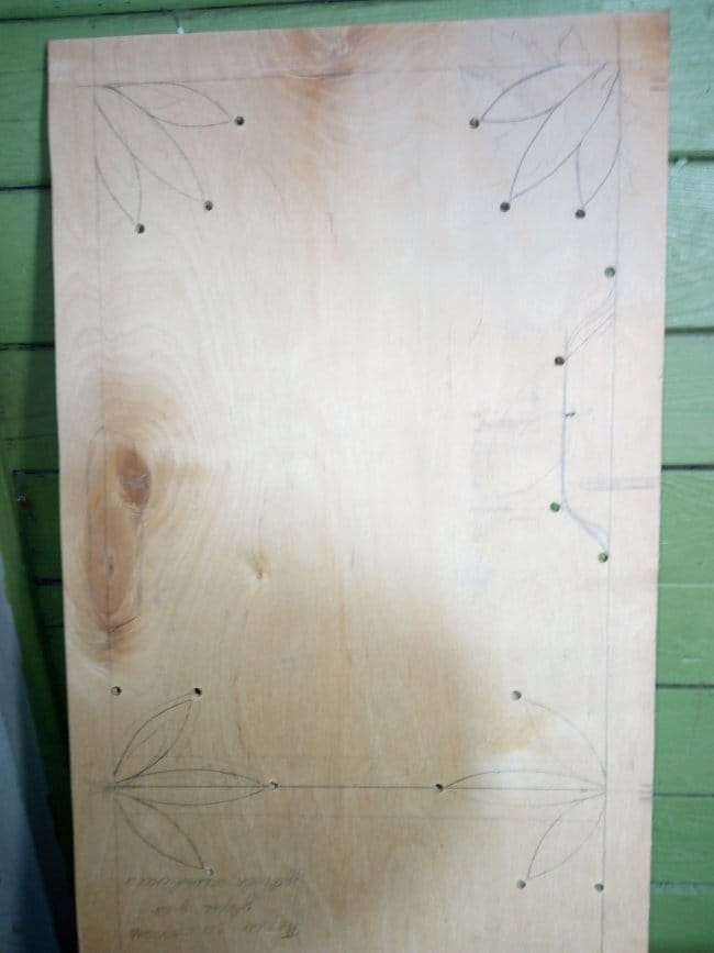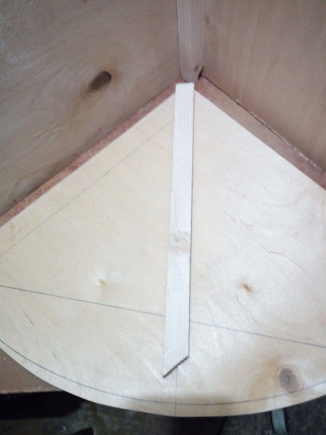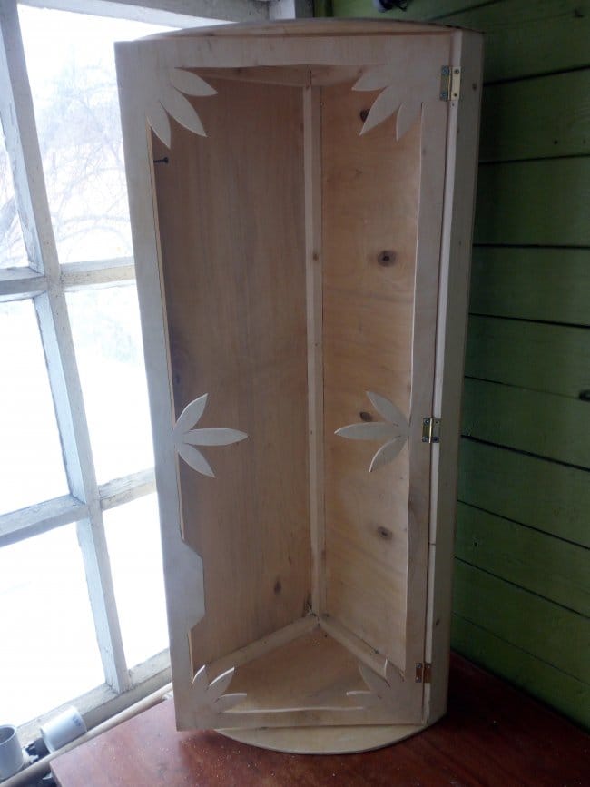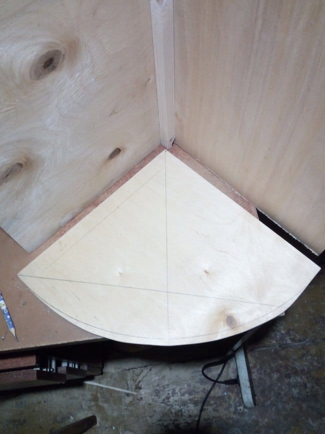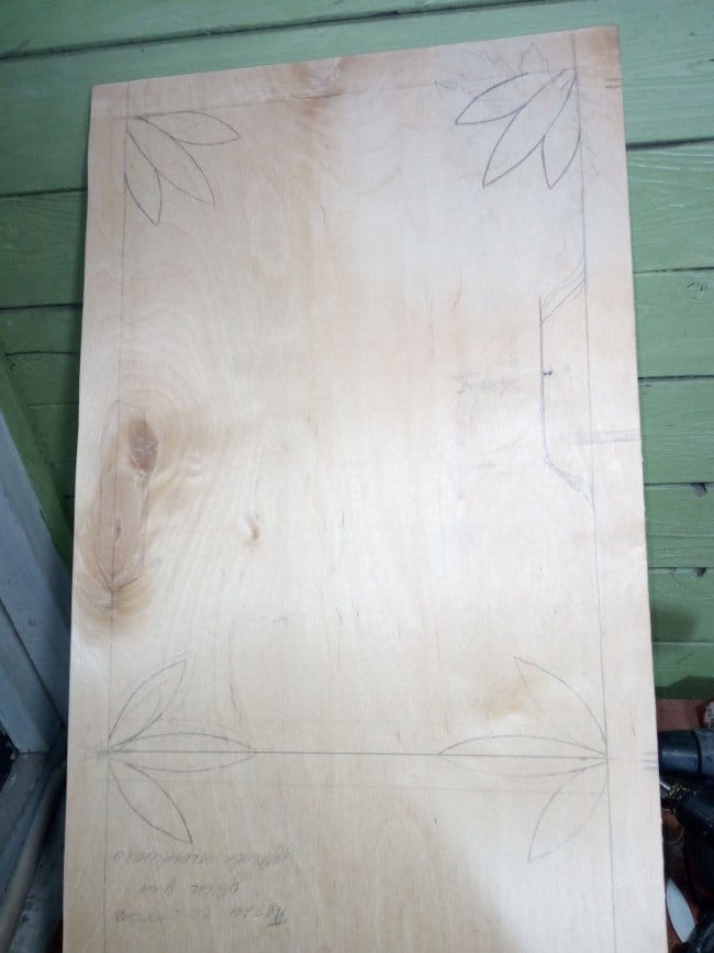 Из фанеры, что осталась от двери когда выпиливался орнамент получаются полки. Во внутреннем пространстве изделия делаю разметку под полкодержатели.