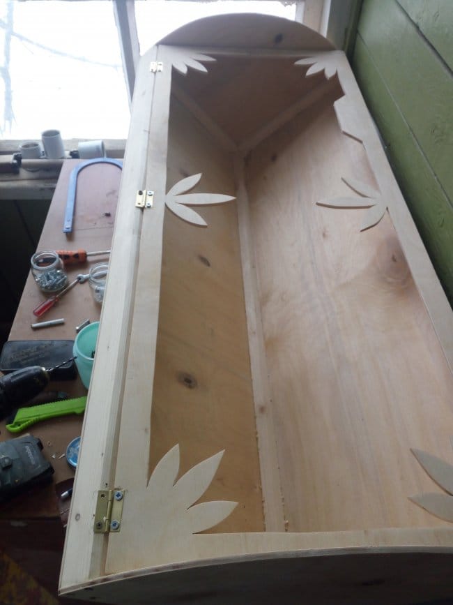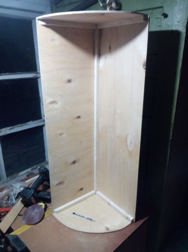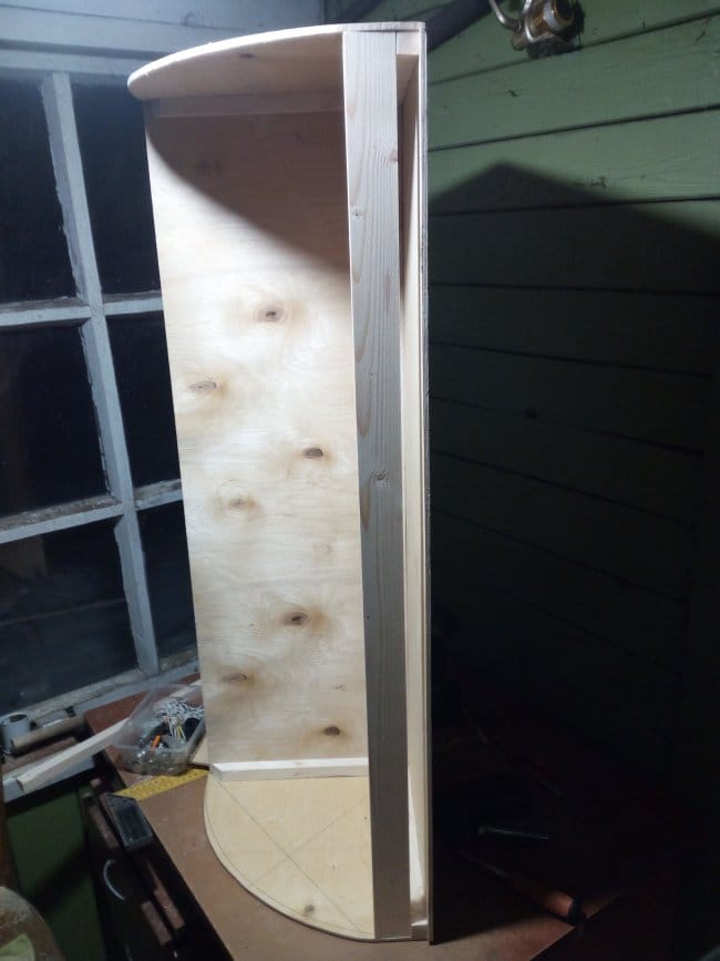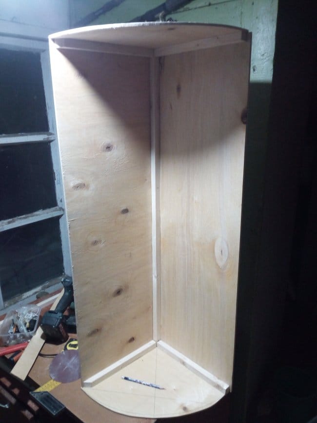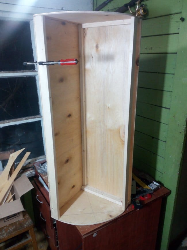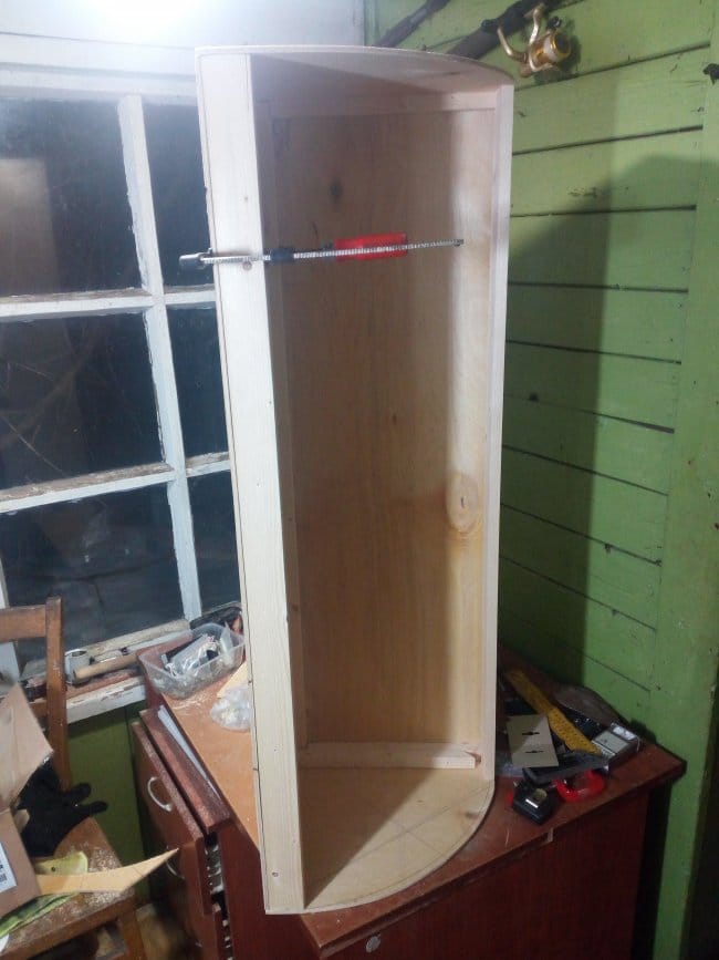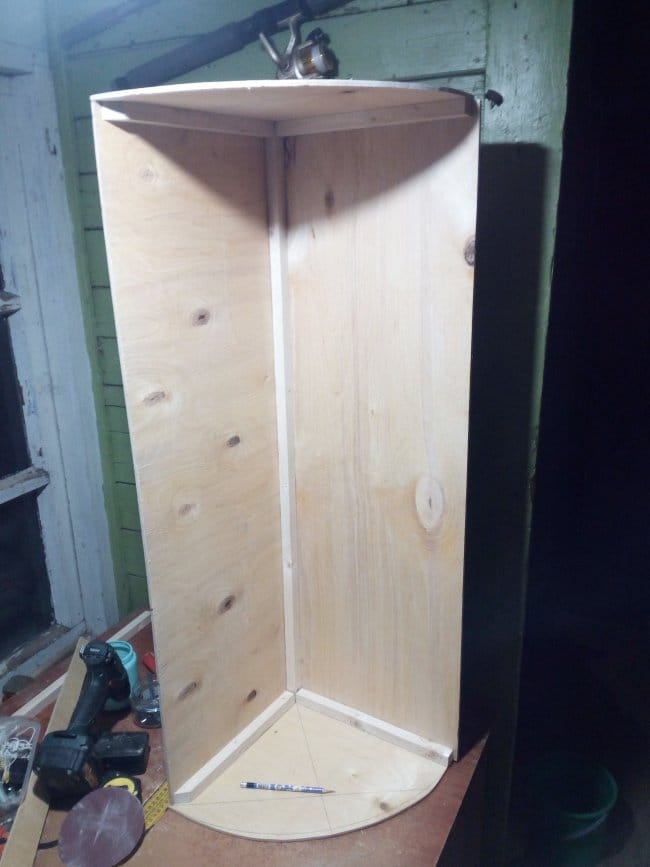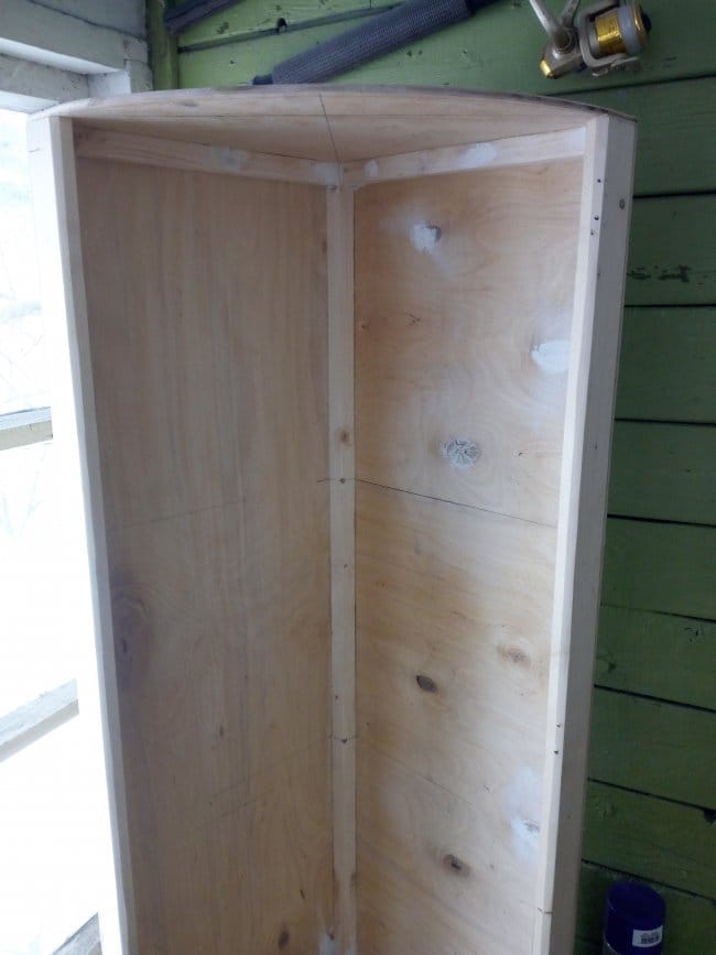 Из фанеры, что осталась от двери когда выпиливался орнамент получаются полки. Во внутреннем пространстве изделия делаю разметку под полкодержатели.