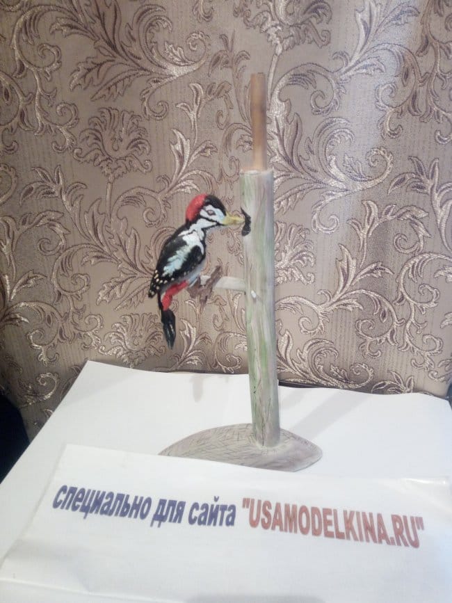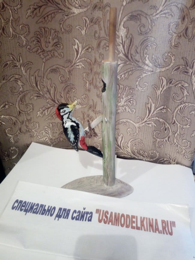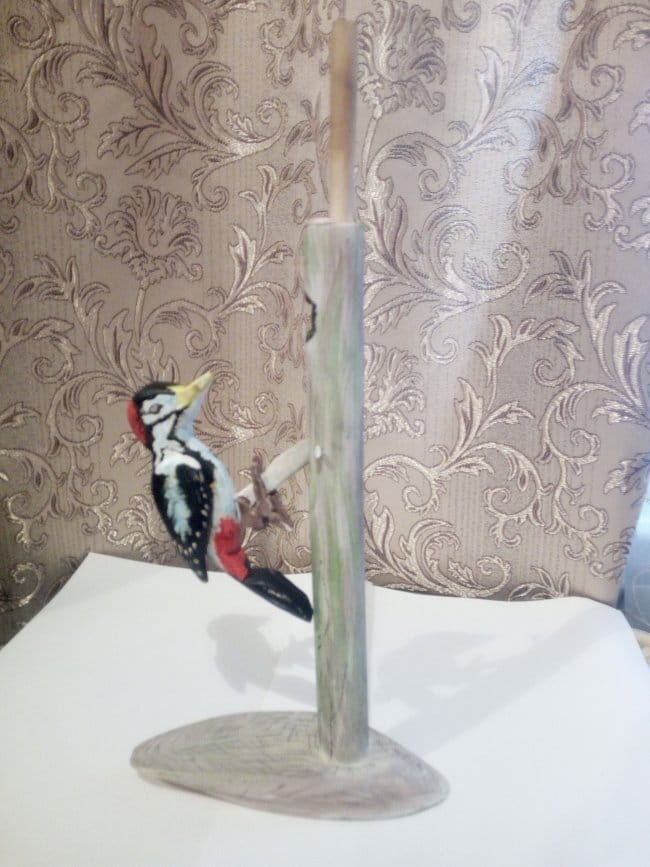 Последним шагом стала раскраска всей конструкции красками. И тут я допустил ошибку. красить планировал акриловыми красками, но у меня не оказалось черного цвета, а это основной цвет у данной игрушки. Эту проблему я решил быстро, просто взяв гуашь нужного мне цвета. Когда игрушка была полностью окрашена, чтобы гуашь осталась на окрашенной поверхности и не пачкала руки, я все покрыл фиксативом. Это спрей для фиксации именно гуашевых красок. Так вот там, где акрил ложился на гуашь, краска немного потекла и изменила цвет. В общем птица стала не такой окраски как была изначально. Но за то вся краска после высыхания осталась на месте и не пачкается! Так что при разукрашивании не повторите мою ошибку, не комбинируйте столь разные краски.