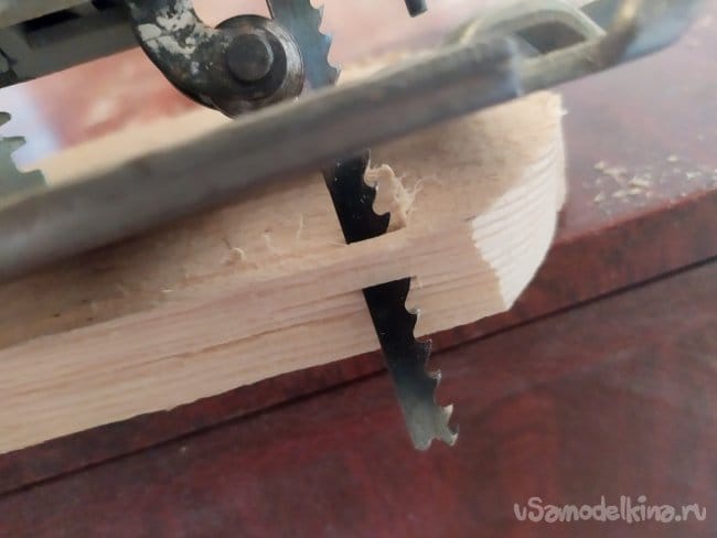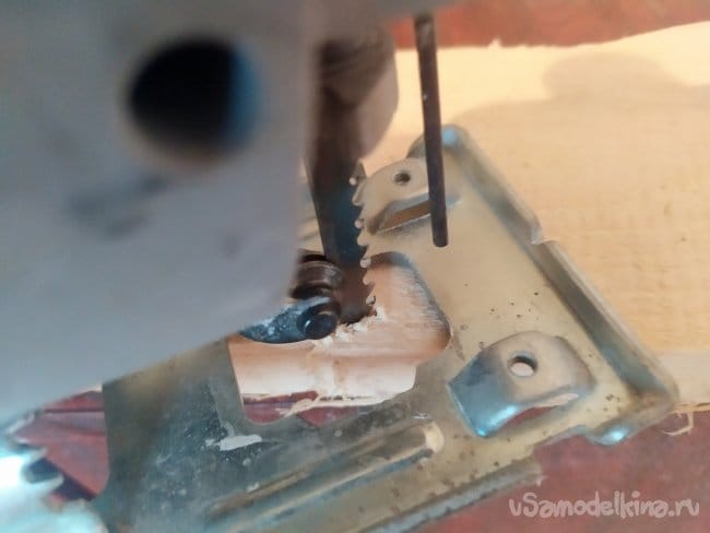 Так же, можно попробовать закруглить углы. Так как у меня нет в наличии хороших профессиональных инструментов, то я сделаю это лобзиком. Я просто держу лобзик под углом, и отрезаю углы на лицевой части.