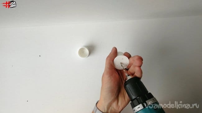 Шаг 3. Беру заглушки и просверливаю отверстие под болт. На заглушках есть следы от литья. Они все расположены на одном уровне, поэтому нет никакой нужды вымерять расстояния.