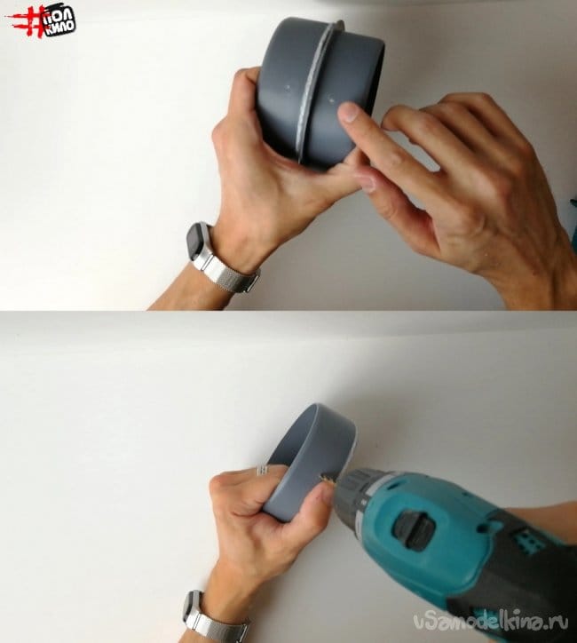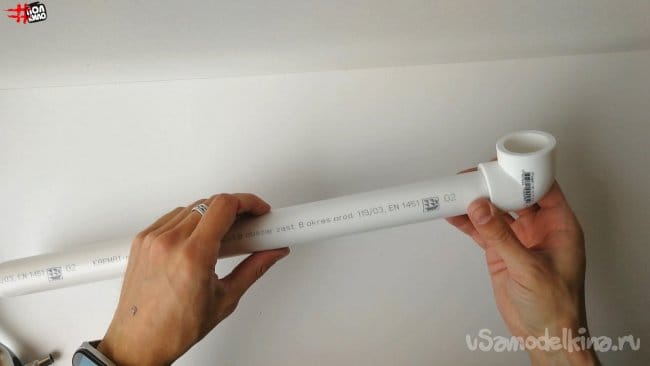 Шаг 5. Беру трубу ПВХ. Отрезаю кусок нужной длинны и приступаю к сборке основания органайзера.