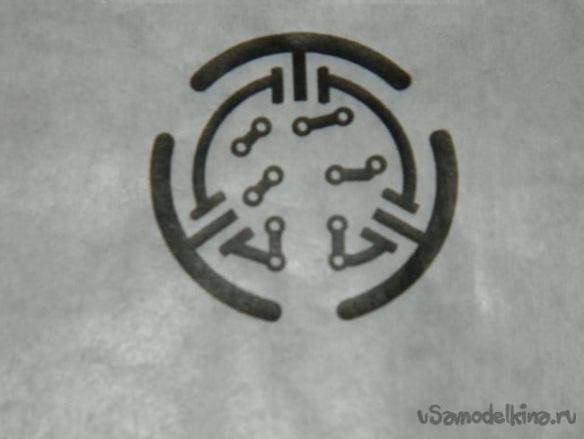 Затем смыл остатки фоточувствительного слоя 7% раствором каустической соды и полчаса протравил в растворе хлорного железа.