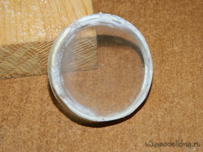 Так как драйвер не имеет гальванической развязки от сети, на плате присутствует высокое напряжение. Чтобы обезопасить себя (и других), я вырезал прозрачный кружок из какой-то упаковки (по-моему, от наушников), срезал бормашиной крышку лампы "заподлицо" и вклеил его супер клеем.