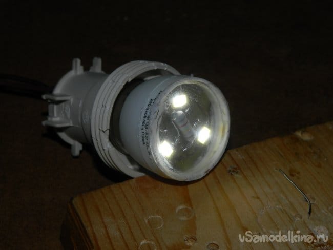 Получился неплохой ночник, который может работать целыми сутками. По расчётам мощность его составляет порядка 0,6 Вт. Потребляет электроэнергии на копейки, а светит так, что может осветить, например, прихожую или двери в туалет или ванную.