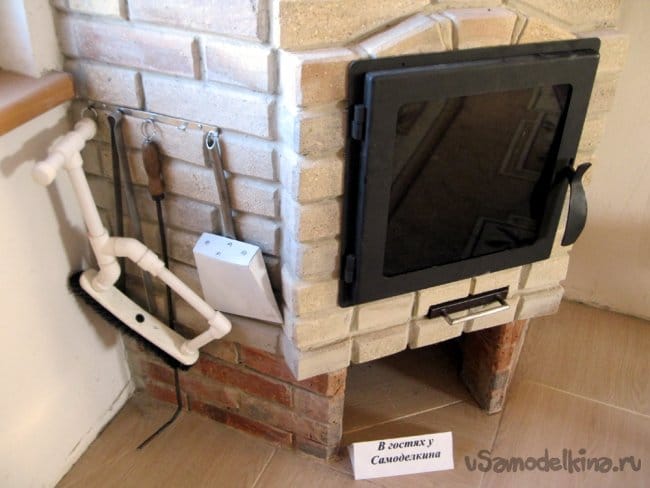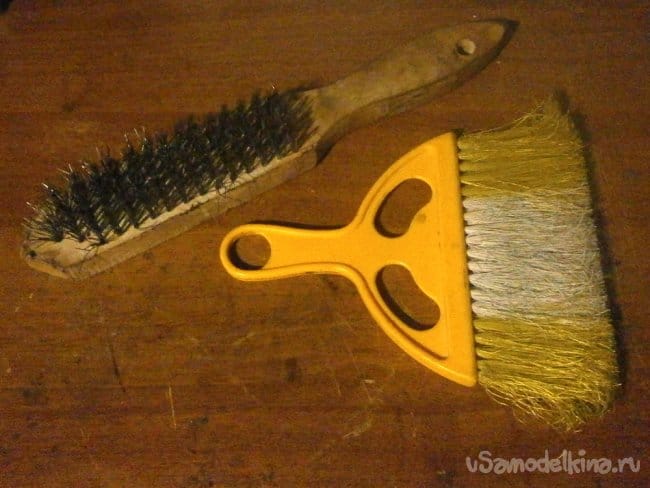 Не думал, что такой девайс вызовет так много споров. Так как кардощётку, вне зависимости от того, из чего выполнены щетинки, из стали или из бронзы, «заказчица» сразу забраковала. «Нечего мой новенький каминчик шкрябать». А вариант из щётки-смётки мне показался слишком маленьким: учитывая объём углей и сажи, можно долго выгребать из камина мусор.