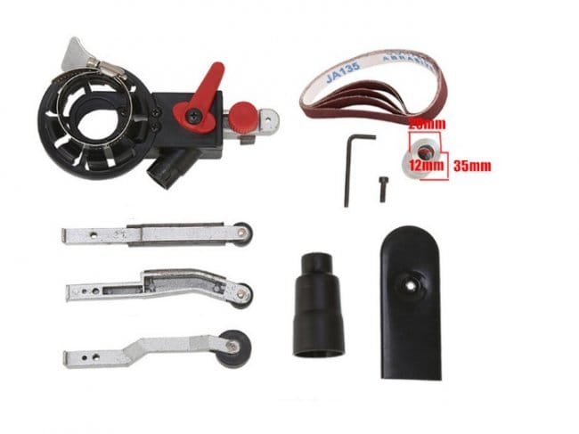 Ширина ремня, используемого данной насадкой, составляет 15 мм, длина — 452 мм. В отзывах покупатели отмечают, что комплектные ремни не слишком высокого качества и потому рекомендуют дополнительно заказать у того-же продавца ленты необходимой зернистости (представлены 60, 120, 240, 400 и 600 грит) в этом лоте.