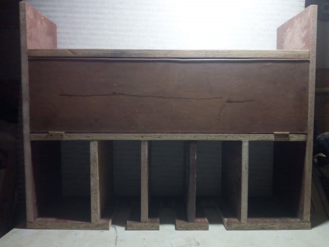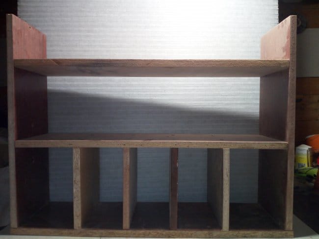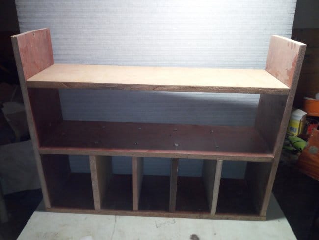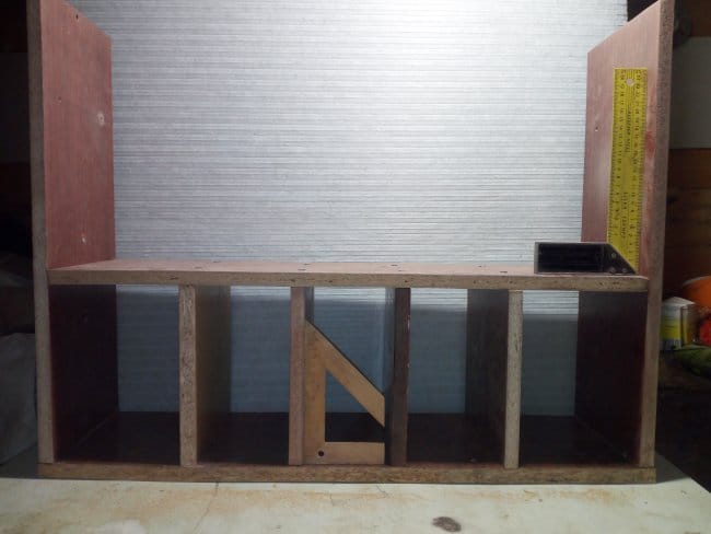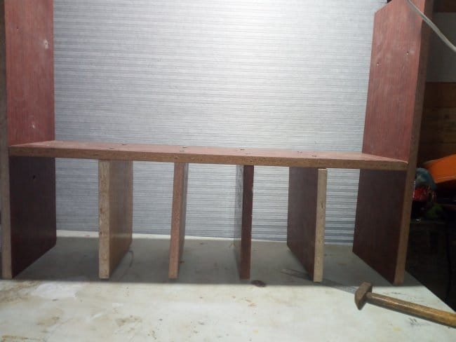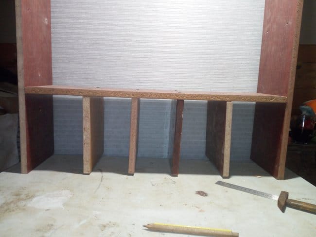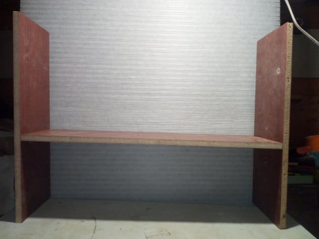 Так как одну из ранее выпиленных заготовок мне пришлось использовать для изготовления дна, чего вообще не планировалось, то пришлось делать еще одну. Креплю ее к боковинам полки. Вот что получилось после всех выполненных действий. В принципе, можно было бы остановиться и на этом варианте, но мне хотелось несколько большего, чем просто набор деталей скрепленных между собой в незамысловатой конструкции. Поэтому продолжаю дальше.