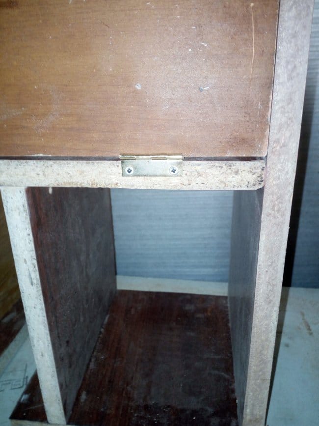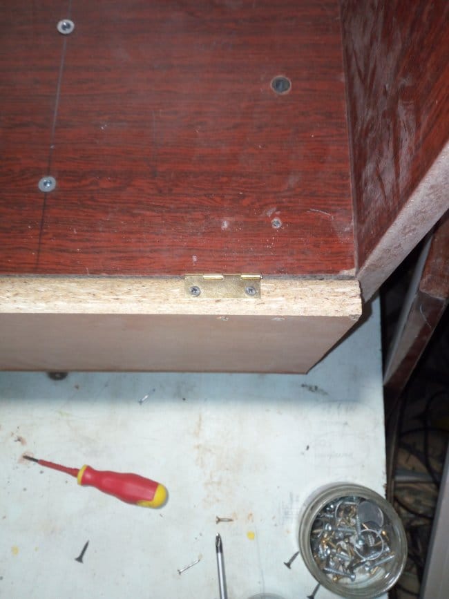 Следующий шаг - это изготовление и установка дверки на полку. Для нее я использовал тот же материал что и на всю конструкцию. После выпиливания всех частей, у меня остался кусок ДСП достаточной длины, но немного уже по ширине чем мне было необходимо. Так как герметичность внутреннего пространства полки мне совершенно ни к чему, то он пошел в дело. Не резать же новую плиту, пригодится на другие вещи.