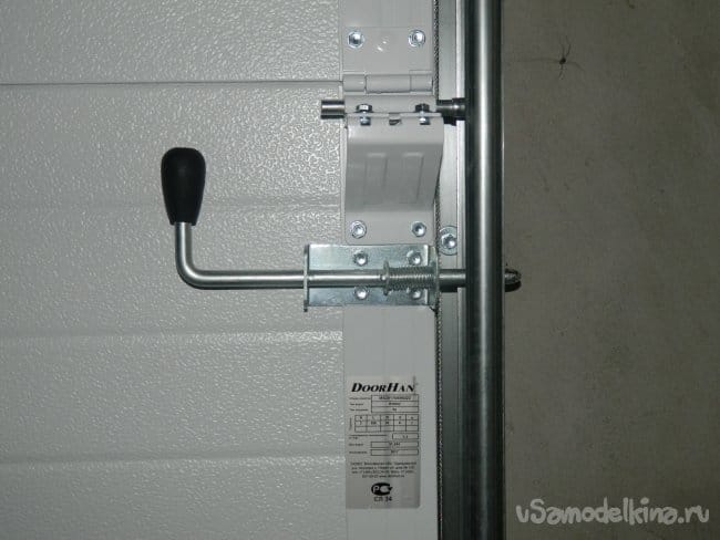 И, наконец, был установлен ригельный запор, который одновременно служит ручкой для поднятия ворот.