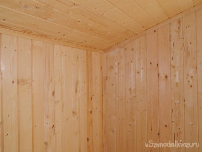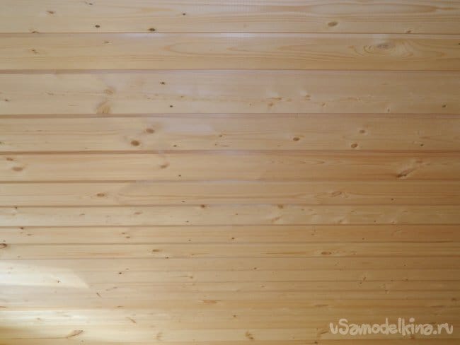 Вагонка Штиль с рабочим сечением 140х16 мм мне очень понравилась своей прочностью, и я спользовал её для обшивки потолка,