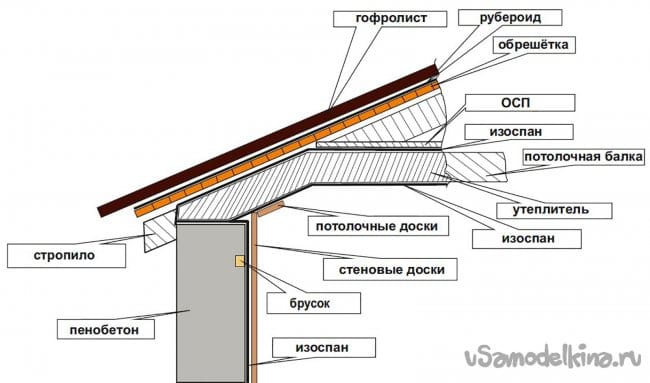 Также щели, образовавшиеся при опоре стропил на мауэрлат, забивались утеплителем изнутри и снаружи.