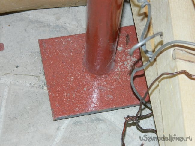Снаружи через стальную площадку, изготовленную из 5-мм стали, шпильки были закреплены гайками.