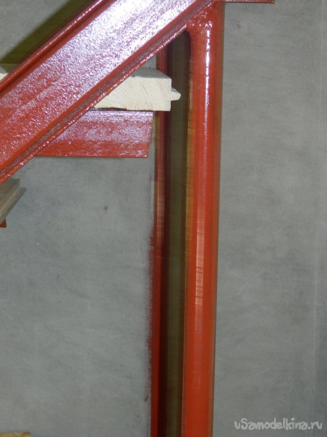 Перила были изготовлены из трубы 1½″. Комфортная, а главное, прочная получилась лестница.